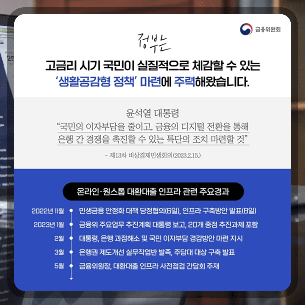 - 2023년 2월, 대통령, 은행 과정 해소 및 국민 이자부담 경감방안 마련 지시입니다.