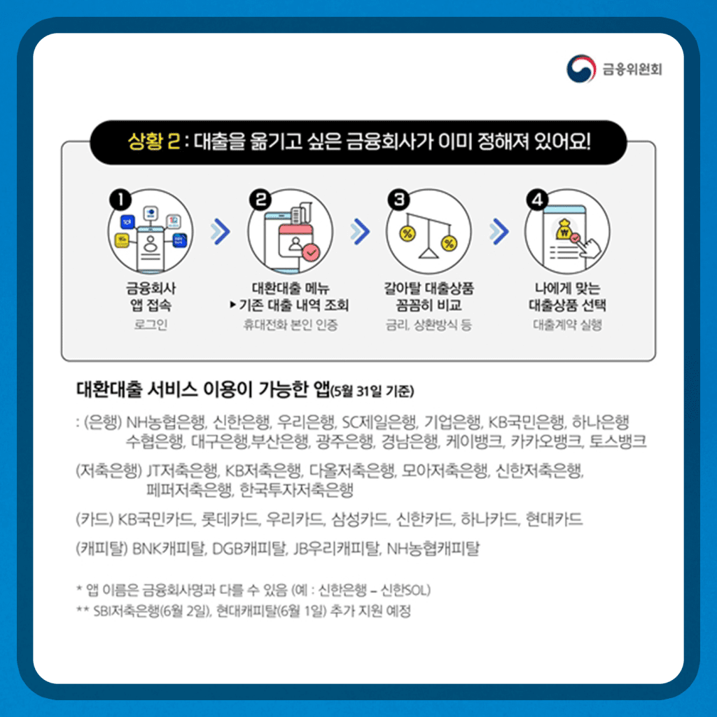 상황2 : 대출을 옮기고 싶은 금융회사가 이미 정해져 있어요!