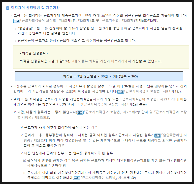 퇴직금 지급기한 및 지급기준 계산기 계산방법까지
