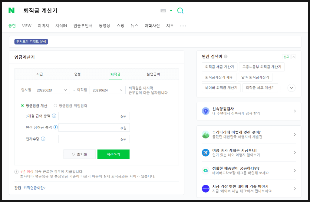 퇴직금 계산기 계산방법